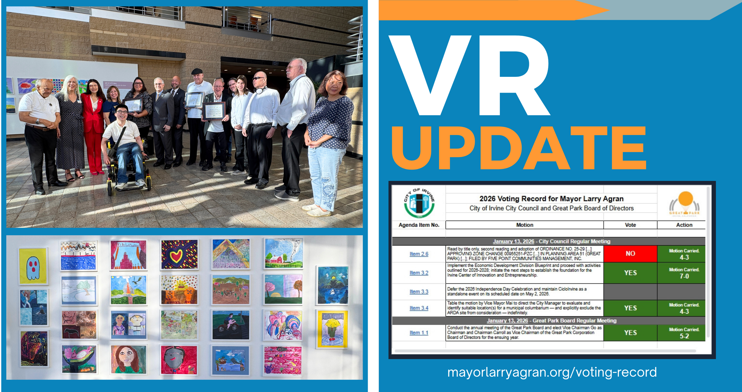 My Voting Record has been updated to reflect the decisions made at the January 13 City Council and Great Park Board meetings. Transparency and accessible decision-making are our commitment to serving and informing the community.
